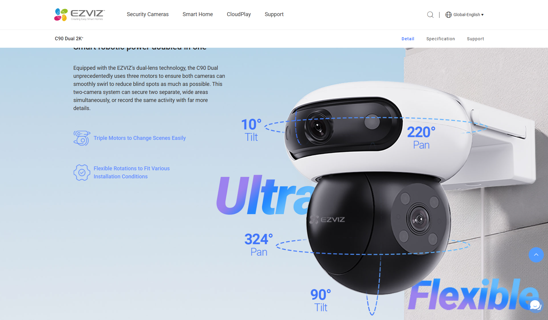 The EZVIZ C90 Dual 2K⁺ is a revolutionary dual-lens pan & tilt camera that provides 360° panoramic coverage and multi-angle surveillance. With two cameras integrated into one unit, it captures every corner of your property in stunning 2K+ resolution.