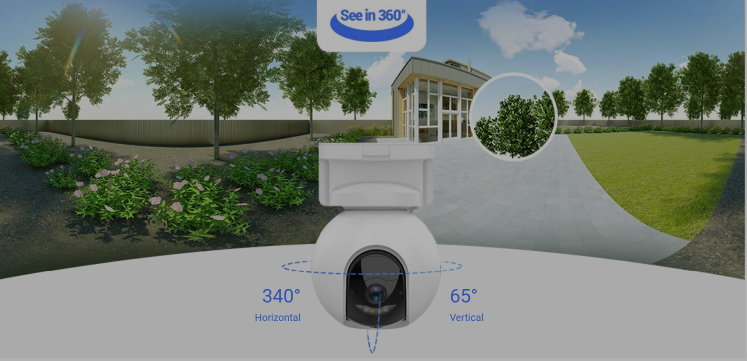 - 🌐 360° Coverage with Pan (340°) & Tilt (65°) – Full sweeping surveillance view